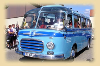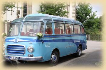 zu restaurieren. Herausgekommen ist dabei ein wahres Schmuckstück das er auf den Namen "Der kleine Prinz" taufte. Innerhalb kürzester Zeit erlangte dieser an Berühmtheit. Michael Kreidler bietet mit seinem kleinen Prinz Nostalgiefahrten, Hochzeitsfahrten, Ausflugs- und Rundfahrten für max. 22 Personen an. |